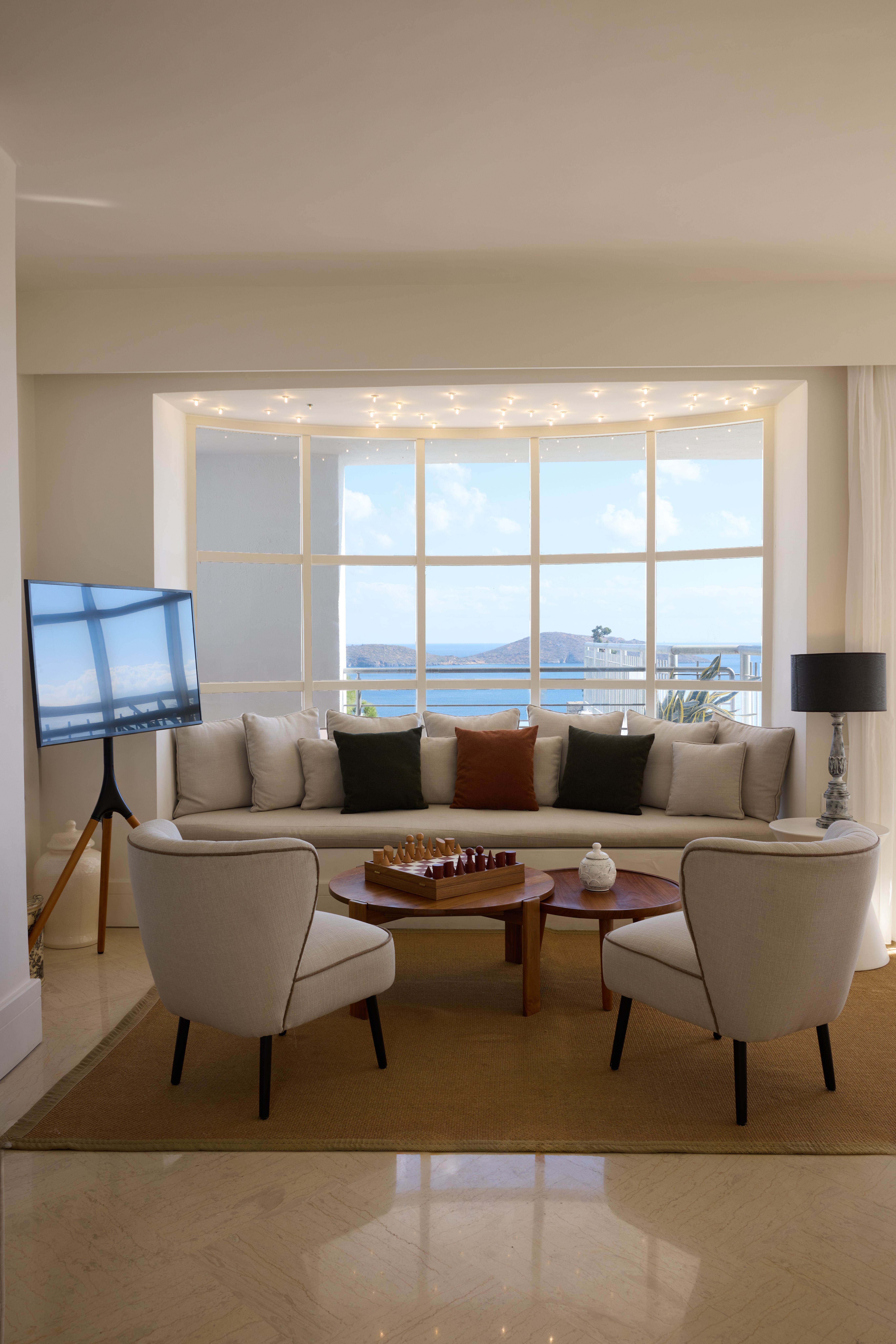 Our Sea View Prestige Pool Villas offer 115–140 sqm of refined Mediterranean living, ideal for families or groups of friends seeking space, privacy, and uninterrupted sea views. Each villa features three beautifully appointed bedrooms, with multiple marble bathrooms enhanced by Jacuzzi bathtubs. The open-plan kitchen and elegant living/dining area create a welcoming setting for shared moments, while modern comforts include satellite TV, A/C, private telephone line, and complimentary high-speed Wi-Fi.